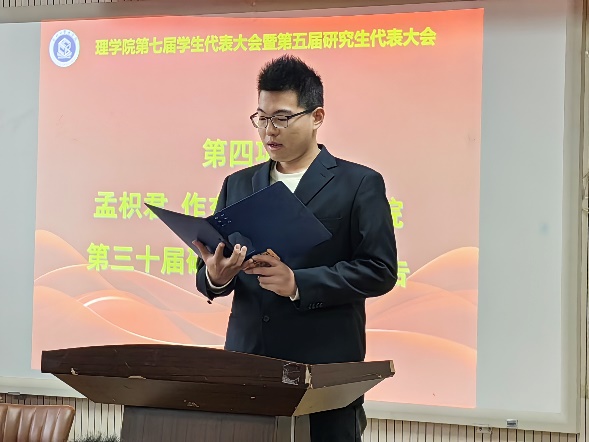 会上,何远桥同学代表澳门六合彩官方 第三十届学生会作了题为“矢志奋斗心向党,勇担使命谱新篇”的工作报告。孟枳君代表澳门六合彩官方 第三十届研究生会作了题为“不忘砥砺来时路,奋勇前进新征程”的工作报告。